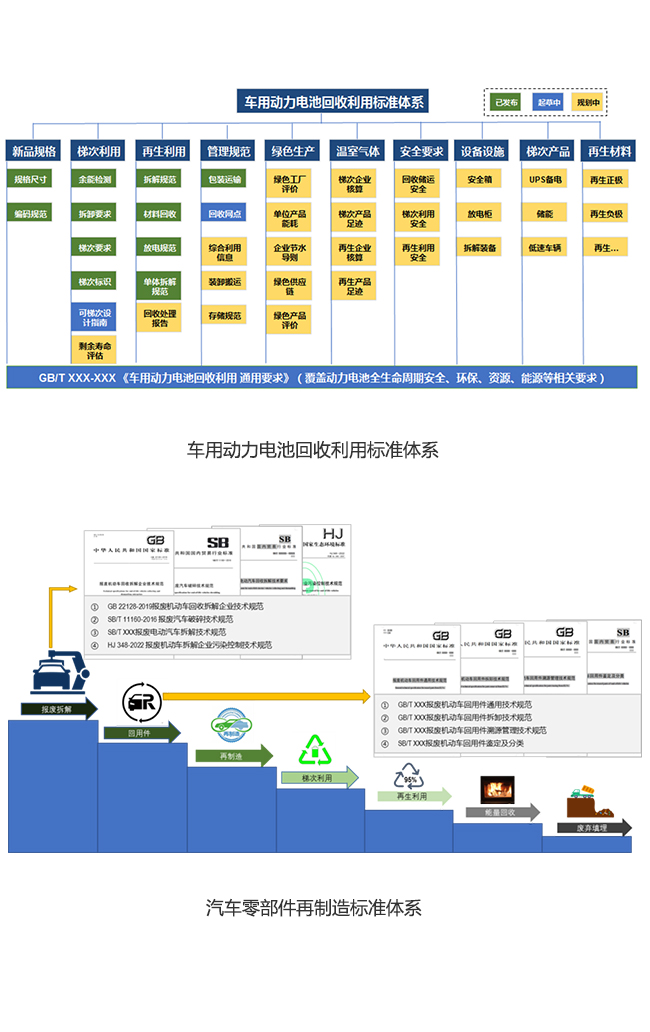 实验室突破退役动力蓄电池梯次利用评估快速检测分选技术,开发了基于历史大数据与电池衰减机理的车载环境容量预估算法,研发了基于超声波检测的剩余寿命评估技术,创新构建了基于安全预警模型的梯次产品多维起火安全管理体系和梯次电池运维监控管理平台,构建了一整套动力蓄电池梯次利用评估、设计与安全管理研究体系,成果支撑了工信部11项相关政策文件的发布,构建了涵盖22项国家标准的体系框架。实验室建立了汽车产品可再利用率和可回收利用率核算数据库平台,构建了包括汽车零部件再制造标识、总成部件再制造产品和共性再制造工艺标准在内的汽车零部件再制造标准体系,制定发布相关国家及行业标准10余项,全面支撑政府主管部门再制造试点工作的开展。上述相关成果获得省部级科技进步一等奖4项、二等奖3项。
